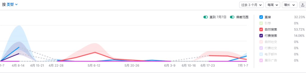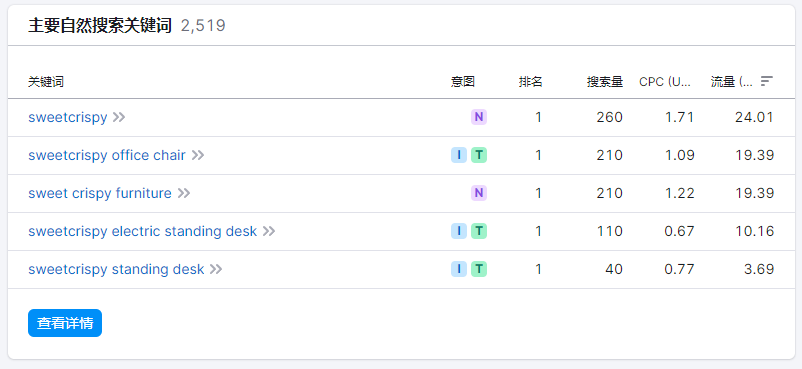 通過SEMrush查詢,分析數(shù)據(jù)可知,該獨(dú)立站55%流量為自然搜索,直接訪問占比同樣可觀,且這些自然搜索高頻詞緊密圍繞品牌名稱,證明了其SEO內(nèi)容策略的高效可行,并已培養(yǎng)起了堅(jiān)實(shí)的用戶社群。